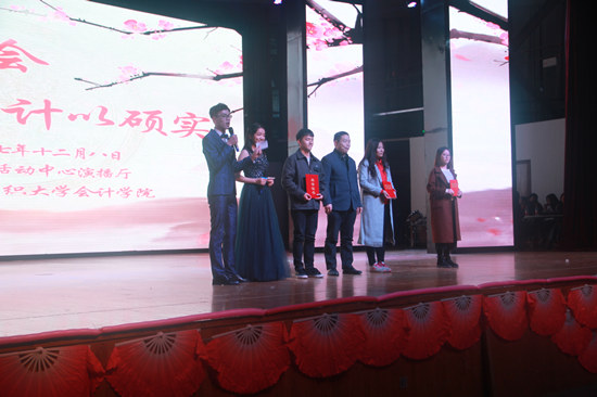 12月8日,yl23455永利官网“秋逢盛会 计以硕实”---会计诚信文化节闭幕式暨颁奖典礼在大学生活动中心演播厅隆重举行。学院党委书记、院长杜国良教授,党委常务副书记杨志强书记,副院长祝建军教授,副院长刘书兰教授,副院长王珍义教授,党委副书记熊敏书记与学院师生欢聚一堂,共庆盛会!