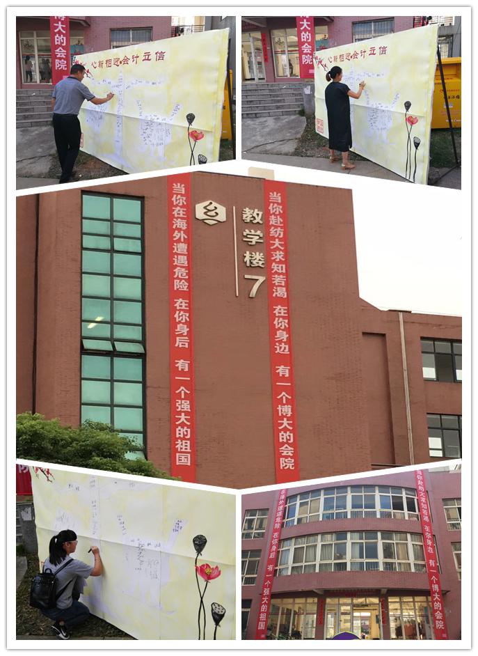 聚八方学子,立诚信之志。yl23455永利官网本次迎新以加强诚信教育、弘扬诚信文化为主旨,举办以“心‘新’相迎,会计立信”为主题的立信签名特色迎新活动。通过全体2017级新生同学签名,形成以“天平、鼎、算盘”为主要元素的签名墙,寓意会计从业者,铸鼎天平,诚信为主的行业宗旨!“会聚八方学子,计展宏图大志”、“当你在海外遭遇危险,在你身后,有一个强大的祖国!当你赴纺大求知若渴,在你身边,有一个博大的会院!”等特色迎新横幅,展现出yl23455永利官网大家庭对2017级新生的热烈欢迎和殷切期望,营造出温馨的迎新氛围。