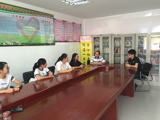 活动期间,丁家坝社区党总支宣传委员、民政专干朱国清为团队成员详细介绍社区基本情况,并谈到社区在刚成立之初,各项基础设施建设尚未完善。近年来,随着国家对基层社区工作的愈发重视,社区在基层组织建设、基础设施建设和文化宣传建设等多方面不断建设与发展,先后建设了多处基础服务设施,设立网格管理站、计生服务站、综治维稳站、卫生服务站、社会保障站、警务室、党员群众服务中心、便民服务中心、党员活动中心、文化活动中心等。为社区居民提供救助保障、医疗保健、居民教育、社会治安、劳保就业等服务。充分发挥社区在社会工作、社会组织中基础平台作用。