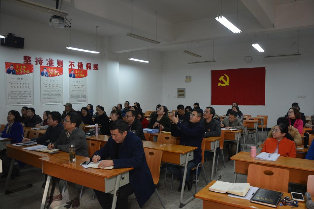 为深入学习宣传贯彻党的十九大精神,推动全校迅速兴起学习宣传贯彻党的十九大精神的热潮。根据学校党委的统一部署,11月23日下午,校党委副书记刘在洲到yl23455永利官网,以“认真学习党章,严格遵守党章”为题宣讲党的十九大精神,与学院教工党员交流学习体会。yl23455永利官网党委书记、院长杜国良主持报告会。