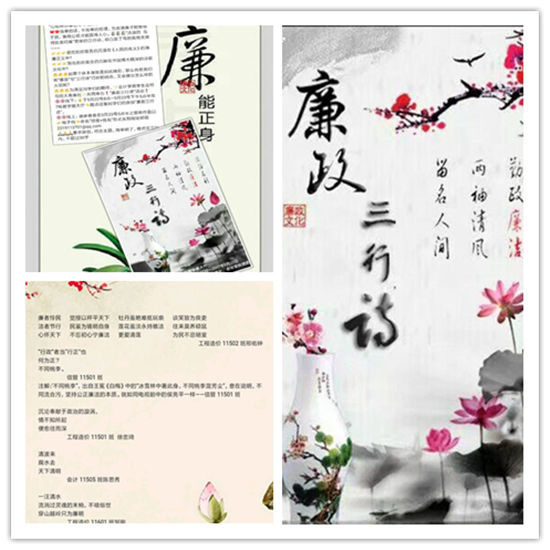 为进一步推进校园廉洁文化建设,普及廉洁知识,传播廉洁价值,提高广大学生的廉洁素养促进社会主义法治社会与和谐廉洁校园的形成。近期,武汉纺织大学青廉社举办“廉政三行诗”系列活动。
