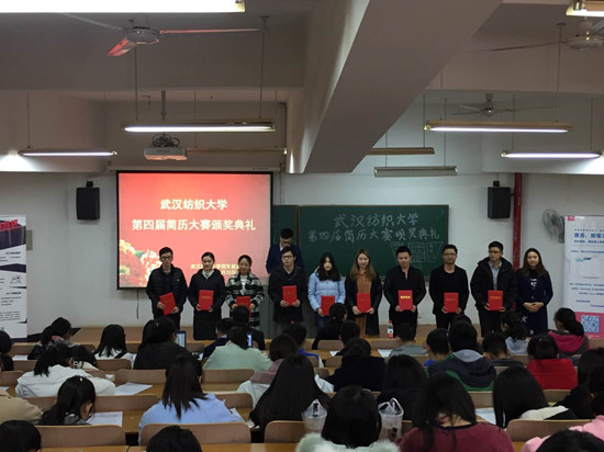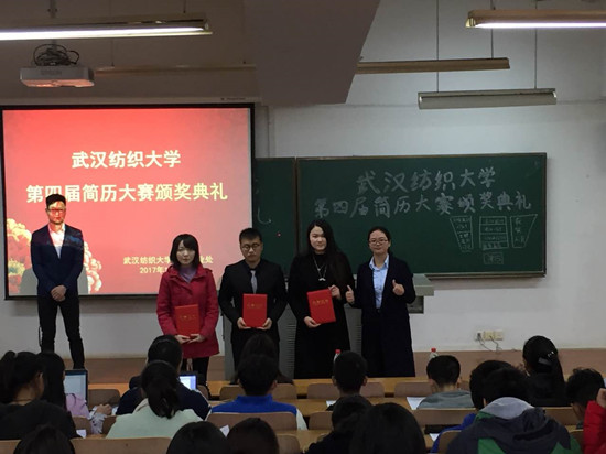 11月23日,由学校招生就业处主办,yl23455永利官网承办的武汉纺织大学2017年简历制作大赛颁奖典礼在7号教学楼T101教室圆满落下帷幕。学校招生就业处副处长熊昌盛、大招一百公司创始成员刘林香讲师、吴婷讲师等企业专家代表参加此次典礼。