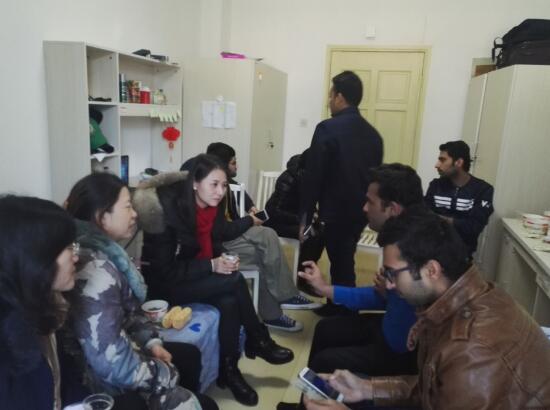 樊敏书记详细询问了寒假期间在校留学生公寓供水、供电、取暖情况,并实地查看了留学生公寓厨房,了解留学生们假期的生活情况,同时,樊敏书记代表学院预祝留学生们春节快乐!王珍义教授希望他们充分利用假期时间,了解中国的节日和文化风俗,在生活中学习语言,并叮嘱他们假期期间注意人身、财务安全,过一个平安、祥和的春节。白平博士就学业学术等情况与他们进行了交流。