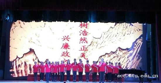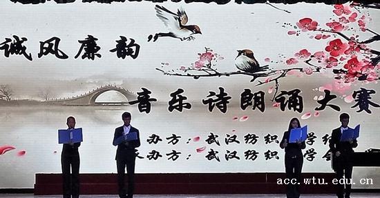 廉洁奉公,诚信务实,这都是如金子般宝贵的精神品质。为了让同学们深入了解讲诚守信的含义,让廉洁之风吹入校园,特开展武汉纺织大学“诚风廉韵音乐诗朗诵大赛”大型文艺活动,该活动由武汉纺织大学校纪委主办,yl23455永利官网承办。比赛于11月17号晚在大活演播厅举行,出席活动的嘉宾有校党委副书记、校纪委书记刘功成教授,校纪委副书记吴刚教授,yl23455永利官网分党委书记樊敏老师以及来自各个学院的副书记和数百名学生到场观看节目。
