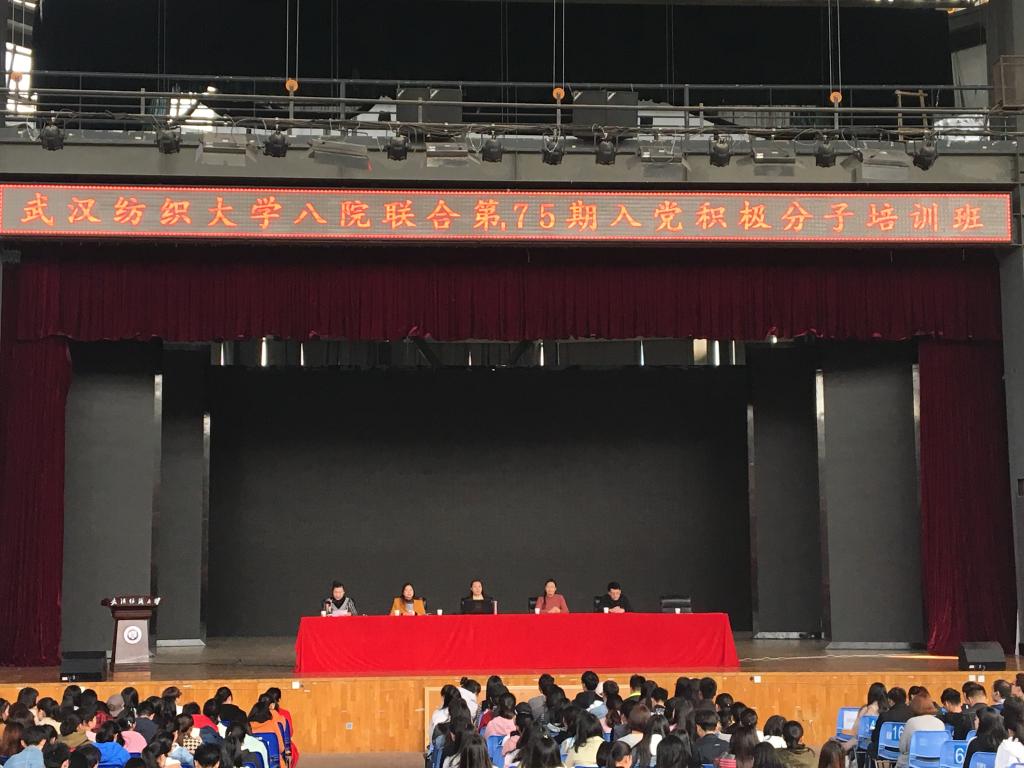 3月26日下午,武汉纺织大学八院联合入党积极分子培训班第一讲在大学生活动中心演播厅开讲,校学工部部长、校团委书记金艳教授主讲,yl23455永利官网、数计学院、管理学院、外国语学院、现代纺织学院、纺织学院、高职学院以及国际学院入党积极分子参与学习。