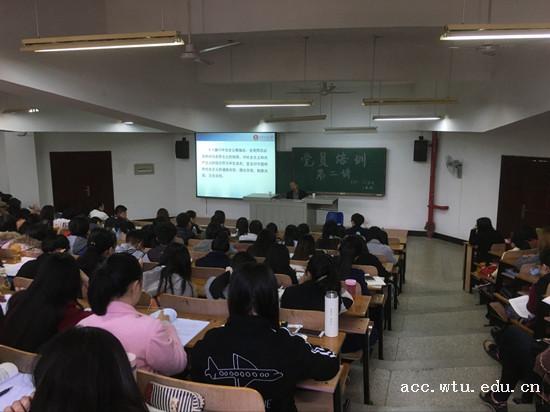 11月10日,yl23455永利官网分党校2016年“两学一做”学生党员培训班第二讲开课,校党委副书记、纪委书记刘功成教授应邀为yl23455永利官网全体学生党员作“两学一做”专题党课,引导学生党员更为深入领会“两学一做”精神内涵。yl23455永利官网分党委书记樊敏,副书记熊敏,各学生党支部书记及200余名学生党员到场学习。