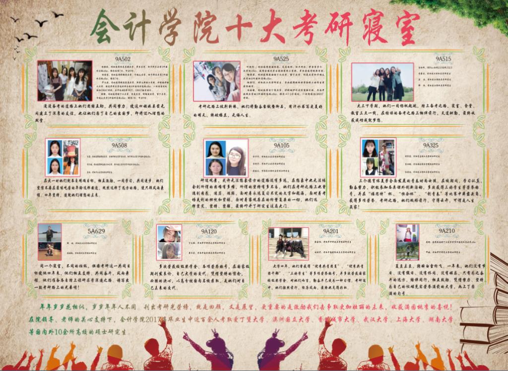 2017年考研结果公布后,yl23455永利官网捷报频传,诞生多个考研“学霸寝室”。为表彰在考研中取得优异成绩的2017届毕业生,激励更多的在校学子勤奋钻研,刻苦努力,不断攀登人生巅峰,近期,yl23455永利官网评选出十大考研寝室。