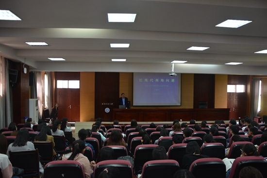 彭敦文教授从中国南海问题的形成出发,讲述中国在长期的历史过程中形成了对南沙群岛及其附近海域的主权和相关权利,阐述中国对于南海主权的近现代维权。彭敦文教授从近代中国南海问题显示出的大国博弈、殖民扩张改变中国南海岛屿的命名体系、列强强占中国南海岛礁的手法等讲述了列强侵占中国南海岛礁的历史经纬;从巩固东沙、西沙主权,维护整个南海权益,强化制度性建设等方面讲述了中国近现代对南海主权的维护;从中国近代以来海疆危机的反思,应对战后掀起的圈海浪潮,警示相关国家觊觎南海权益等方面讲述了南海断续线的形成。