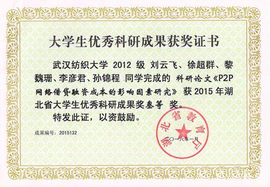 我院由2012级学生刘云飞、徐超群、黎魏珊、李彦君和孙锦程组成的获奖团队申报论文为《P2P网络借贷融资成本的影响因素》。在问到这次研究的过程和印象深刻的事时,成员表示,做研究的时候要收集整理很多资料,特别繁琐,而且当时论文写得不是很完善,在网上找了很多资料参考,最终在指导老师王珍义教授的帮助和成员的努力下,获得了三等奖。