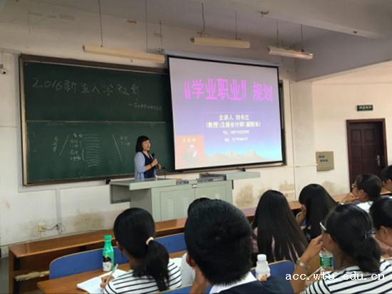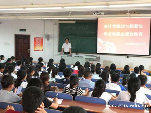 本次教育讲座分为会计、ACCA,工程造价、财务管理四个专业进行。yl23455永利官网领导班子与新生集体见面。杜院长首先对新同学的到来表示了热烈的欢迎,向同学们详细地介绍了我校悠久的历史和独特的专业文化,介绍了yl23455永利官网的学院历史、专业背景和专业设置已经发展前景等。他向大家提出了“做好高中生到大学生的角色转变,熟悉并利用好新的学习生活环境”的要求,希望同学们多多了解yl23455永利官网,同时表达了对16届新生的美好期望与信心。