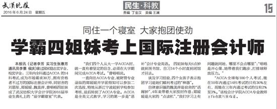 我院学霸四姐妹考上国际注册会计师,被楚天都市报、武汉晚报报道