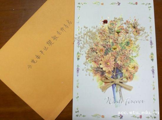 据悉本次赠送活动由班长兼组织委员徐超群策划组织并拟稿副班长王秋菊广泛宣传动员学习委员谢晶与生活委员董亚兰文艺委员云晓丽三位同学精心挑选感恩卡李彦君王子良刘文泉刘峘四位同学代为书写毕业感恩辞。感恩辞简短凝练,以“敬爱的老师,您好!”开篇,首句回顾各位老师在大学四年为卓越班倾注的关爱与辛劳,集中描绘各位老师给卓越班同学留下的深刻印象;次句表达对与老师一同度过大学最美好时光的眷念,以及在老师引导下对未来职业生涯的无限想往;最后所有同学送上了对老师们深深的祝福,并以“卓越CPA11204班爱您的孩子们,2016年5月20日”收尾。词句虽短,但厚重的感激之情尽在无言的留白之中;卡片虽薄,但师生情谊的佳话会怀念并承载于上!