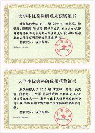 获省大学生科研优秀成果奖三等奖两项
