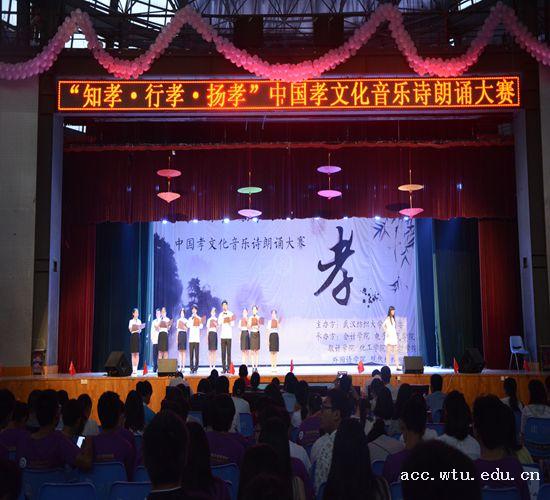 为传承中国孝文化,由武汉纺织大学校团委主办,yl23455永利官网、电子电气学院、数计学院、化工学院、高职学院、外国语学院、现代纺织学院联合承办的武汉纺织大学知孝,行孝,扬孝”中国孝文化音乐诗朗诵决赛5月28日晚,在大活演播厅举行