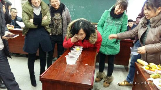 为增强学院教职工之间的交流,使教职工保持良好的精神面貌迎接寒假和春节的到来,2016年1月19日下午,我院工会组织全院教职工于阳光校区409会议室举办“迎新年”系列趣味活动。