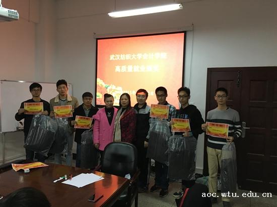 在颁奖仪式的开始,熊敏书记宣布了本次获得高质量就业积极分子奖励学生名单,并对就业单位进行了简单介绍,来自工程造价和会计学专业的钱豪楠、唐红、张宏雷、、杨李、占灿等十三名学生分别签约了中铁十一局集团公司、中国交建第二公路工程局、中冶建工集团、中国核工业第二二建设有限公司等中央企业。