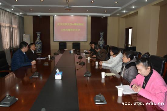 胥朝阳和王贤瀚签订了武汉纺织大学CMA项目合作协议书。