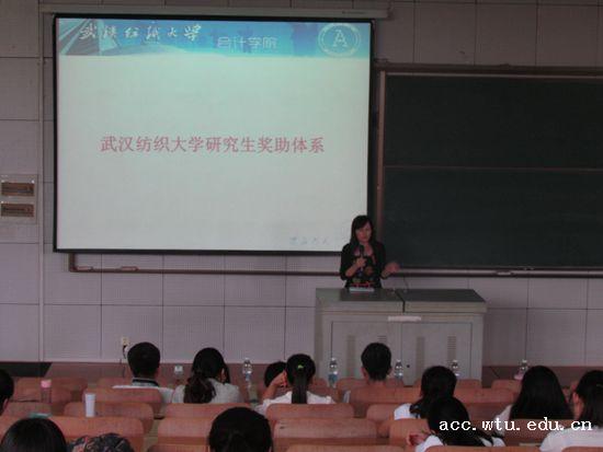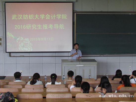 9月17日,yl23455永利官网面向武汉纺织大学在校学生举行了2016研究生报考导航,yl23455永利官网胥朝阳院长、王珍义副院长、熊敏副书记等人以及近百名大三大四的学生参加了此次活动。