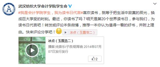 yl23455永利官网“为世界读书日代言”微博话题引热议