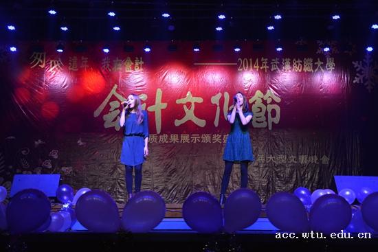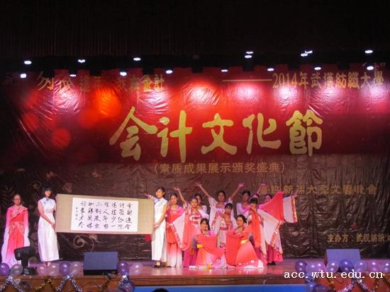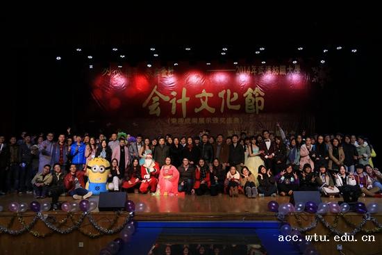 12月23日晚,2014年武汉纺织大学会计文化节闭幕式素质成果展示颁奖盛典暨迎新年大型文艺晚会在大学生活动中心演播厅隆重召开。校党委宣传部高建勋部长、后勤集团谢晓萍总经理、国际处林莉处长、学工部肖迪明副部长、保卫处武猛副处长,以及江夏区团委办公室胡爱华主任、江夏区团委学少部李志部长,yl23455永利官网全体领导班子以及来自各二级学院的分党委副书记们出席并观看了晚会。