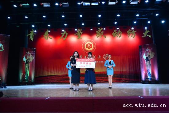 2015年5月4日武汉纺织大学纪念五四运动96周年主题团日暨2014—2015学年度大学生榜样人物颁奖晚会已成功举办,yl23455永利官网刘聪同学荣获“青春力量,感动纺大”之最专注奖。