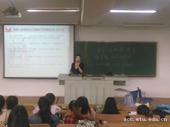 日前,由yl23455永利官网与湖北鑫天证教育咨询有限公司联合举办的“2015全国注册造价员高分通过专题讲座”在我校文科楼举办。本次讲座立足学生现实,以增强造价专业学生的就业意识、培养优秀造价员为目的。