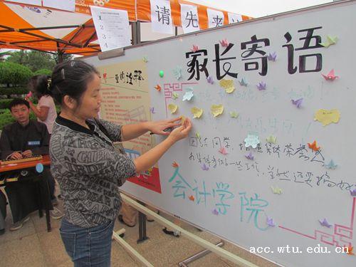 在活动现场,不少家长受邀后欣然提笔寄语。会计11403班王雪同学的妈妈写下了“新的起点,新的开始。王雪,加油!”简单朴实的话语却格外真实、充满力量。寄语寄托了家长们最殷切的盼望和最深情的祝福,不少新生看到寄语后也表示深受感动。
