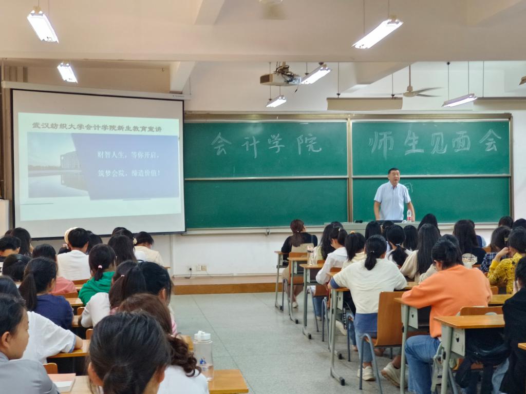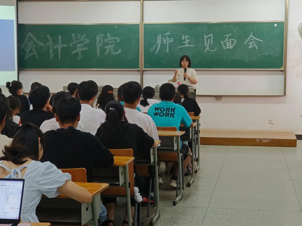 为了增进师生关系,帮助2022级yl23455永利官网新生尽快适应大学生活,实现身份转型、树立远大目标、端正学习态度,9月26日上午学院在阳光校区6栋211、212教室开展了以“遇见会计遇见你”为主题的师生见面会,学院领导班子、系主任、辅导员与全体新生见面交流。