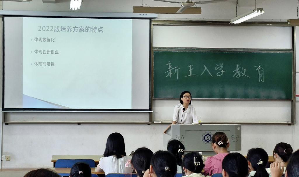会计系杨孙蕾主任针对会计专业新生介绍了会计专业培养方案的三个特点,剖析了2022版培养方案体现出的数智化、创新创业、前沿性的特点,她提醒新生们要关注学业情况,学好专业课,为之后的职业生涯打下良好的学科基础。她还从就业和考研两方面给同学们做了一个简单的规划展望。