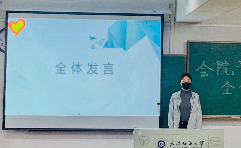 全体发言环节,各部门干事积极踊跃地上台,现场气氛热烈。公益推广部的陈未鸣同学说:“在新生报道期间我便感受到了志愿者的活力与热情,我也希望在日后能贡献出自己的一份力量帮助他人,积极工作,完善自我”。