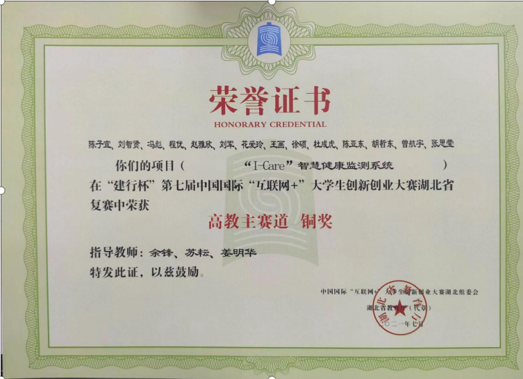 此外,她广泛参加各类竞赛,取得了教育部等机构颁发的累计14项高奖项成就:2020年10月获得湖北省教育厅颁发的第六届中国国际“互联网+”大学生创新创业大赛湖北省银奖(护电安——电力作业智能监督设备);2020年10月获得湖北省教育厅颁发的第三届“她梦见——楚天创客”大赛湖北省银奖(护电安——电力作业智能监督设备);2020年获得中国商业经济学会颁发的全国大学生财经素养大赛总决赛二等奖;2020年获得湖北省翻译工作者协会颁发的第 27 届湖北省翻译大赛初赛优胜奖;2021年7月获得湖北省教育厅颁发的第七届中国国际“互联网+”大学生创新创业大赛湖北省铜奖(“I—Care”智慧健康监测系统);2021年7月获得湖北省教育厅颁发的第四届“她梦见——楚天创客”大赛湖北省铜奖(“I—Care”智慧健康监测系统);2021年5月获得教育部高等教育司颁发的国家级大学生创新创业训练计划立项项目一个(天门芋环的逆袭—基于电商价值链重塑的特色农产助销扶贫计划)和省级大学生创新创业训练计划立项项目一个(基于动漫新载体下的红色文化传承路径研究);2021年获得中国商业会计学会颁发的第四届全国高校企业价值创造大赛区域赛三等奖;2021年获得上海市金融青年联合会颁发的长三角大学生金融创新实践大赛决赛三等奖;2022年于第七届社会科学与当代人类发展国际会议发表论文—“中国煤炭行业环境核算信息披露问题及对策研究”;2022年获得教育部高等教育司颁发的省级大学生创新创业训练计划立项项目(双循环格局下她国消费增长的影响因素研究——基于消费需求的三维视角)。2022年10月获得湖北省教育厅颁发的第八届中国国际“互联网+”大学生创新创业大赛湖北省银奖(电力作业智能监督设备);2022年9月获得湖北省教育厅颁发的挑战杯湖北省铜奖(电力作业智能监督设备);以上为主要获奖情况。