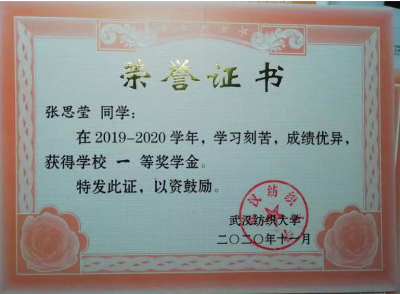 大学的学习生活紧张激烈,她一直严格要求自己,积极进取,勤奋踏实,刻苦专研,注重学习效率,讲求学习方法,以高标准要求自己,毫不松懈,胜不骄败不馁,在大一和大三学年均取得智育成绩和综合测评成绩班级“双第一”,专业年级前3%的优异成绩。过去的一个学年,她的综合测评成绩位于全年级第一。
