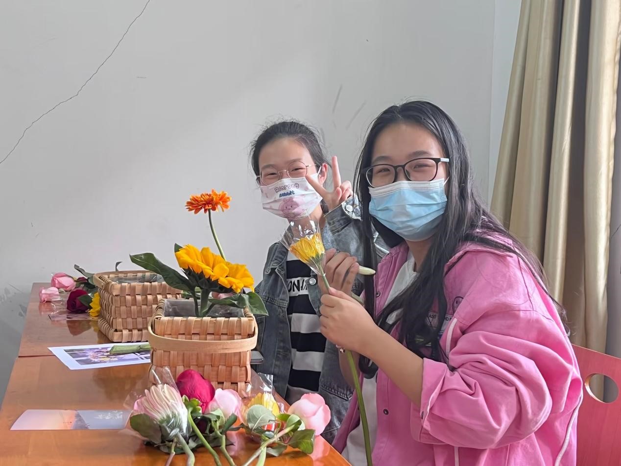 同学们将对彼此的祝福写在明信片上,相互交换,现场气氛十分热烈,“这次插花活动的体验感很好,很开心,很有意义,希望以后也多开展类似的活动”,同学们在交流中谈到。
