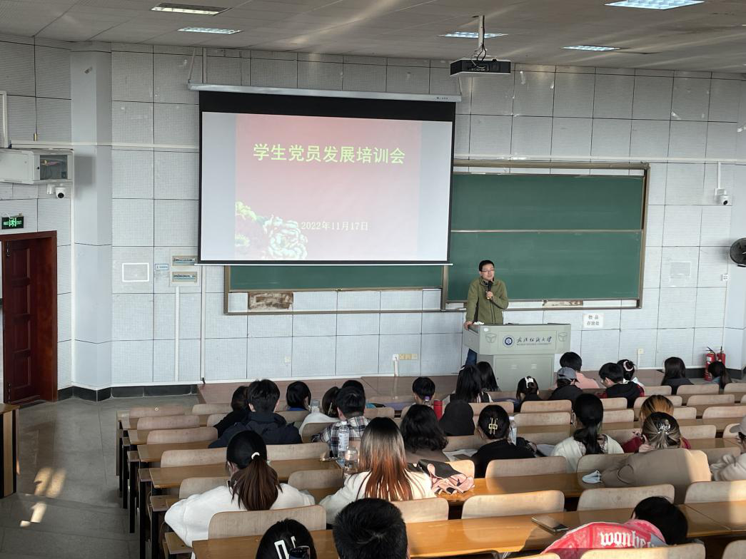 20221117日下午3:30,yl23455永利官网在7T302组织召开学生党员发展培训会。学院党委副书记古江波、辅导员夏书明老师给各学生党支部预备党员、发展对象进行专题培训