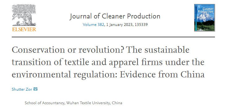 近日,yl23455永利官网2020级学术型硕士研究生左祥太(Shutter Zor)在导师罗恺副教授指导下完成的论文在国际知名期刊《Journal of Cleaner Production》上独立发表,论文题目为“Conservation or revolution? The sustainable transition of textile and apparel firms under the environmental regulation: Evidence from China”DOI:10.1016/j.jclepro.2022.135339。