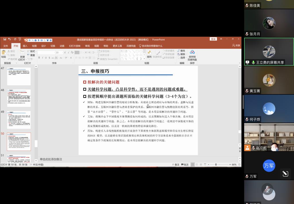 在经验分享完毕后,王教授对于青年教师提出的自身申报中出现的问题进行了一一解答。