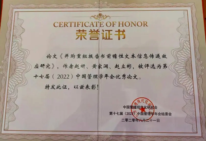 八、开展暑期夏令营,提升研究生培养质量。为研究生举办首期“实证会计研究”暑期夏令营,邀请学术骨干开展了10次不同主题的实证研究方法线上培训。研究生首次在《管理工程学报》和《运筹与管理》等国家自然科学基金委A类期刊上发表论文,首次获得2022年度中国工业经济学会年会优秀论文、第十七届(2022)中国管理学年会优秀论文。2名研究生分别考取西南财经大学和华侨大学博士研究生。
