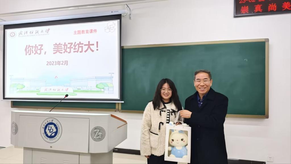 随着下课铃声响起,同学们纷纷表达对徐院士的感谢,会计12104班冉艳玲同学代表全体同学向他送上“计贝贝”文创作品。同学们表示:“徐校长讲话真诚,为人亲切,事事替学生考虑,就像大家长一样,我们一定不负校长所望,努力成为优秀的纺大学子!”(中国教育在线)