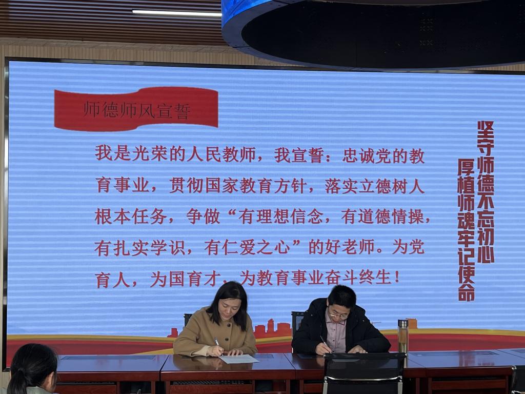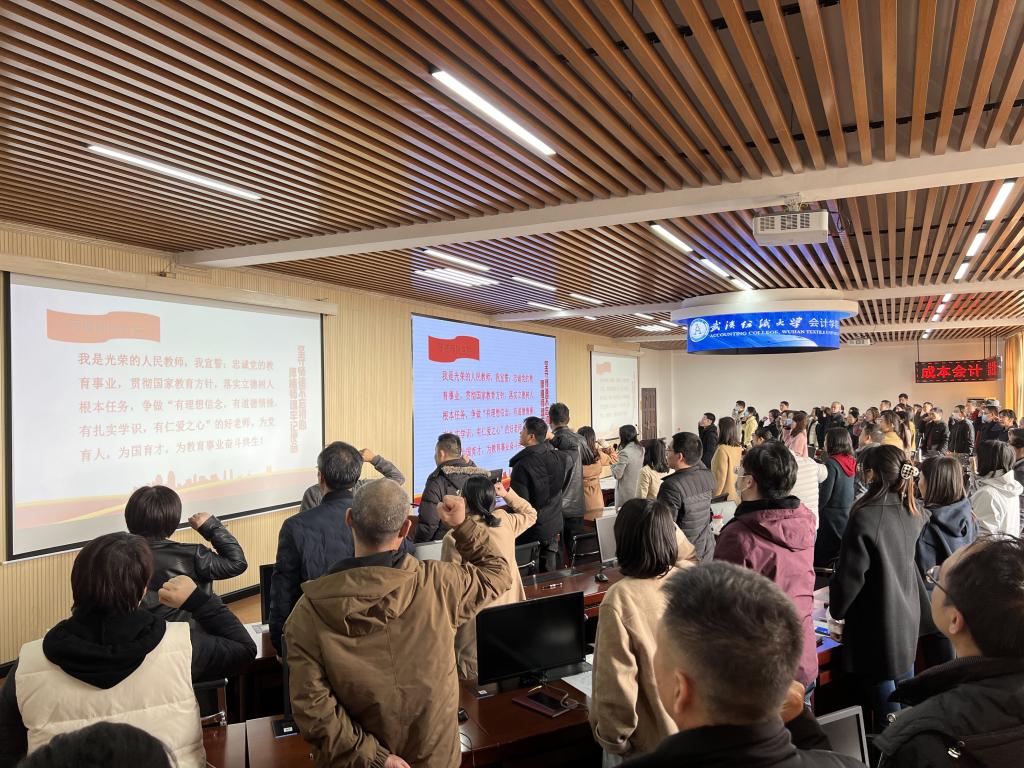 会上,全体教职工进行师德师风宣誓并填写了《武汉纺织大学教职工师德师风评价表》。