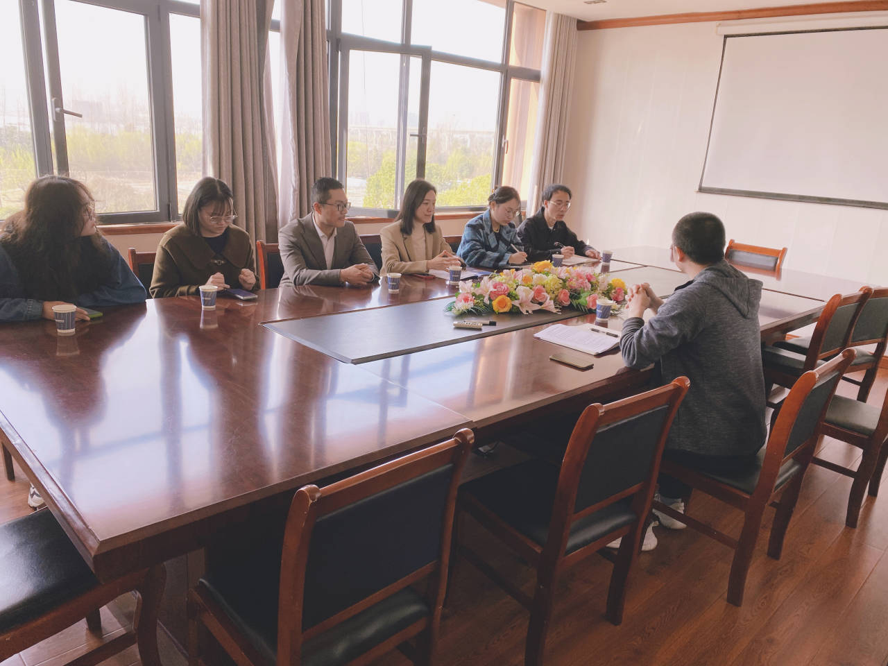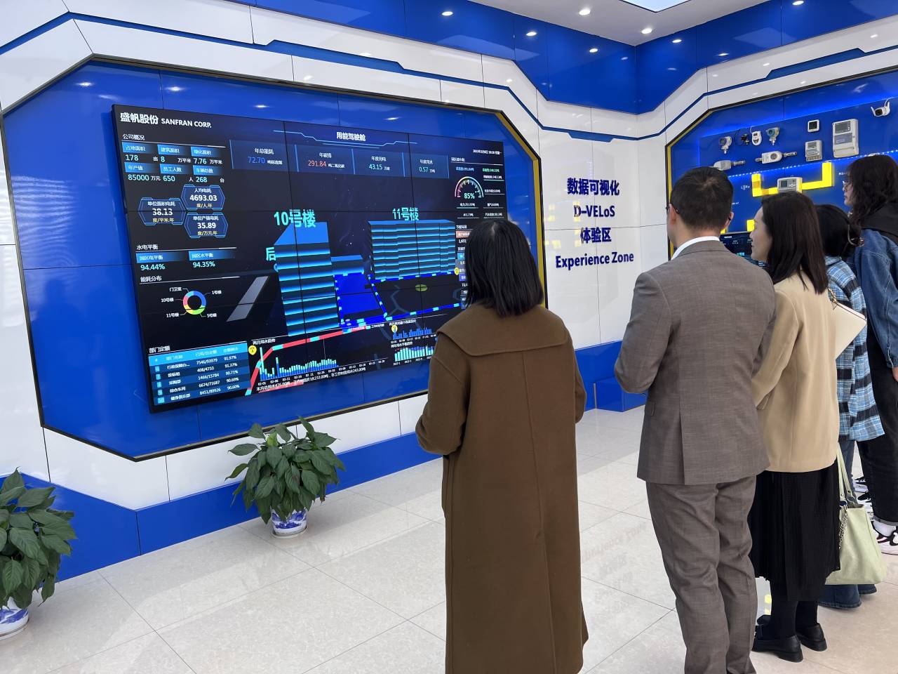 在财务总监唐锐和总账会计张淑文的陪同下,学校一行人参观了数据可视化体验中心,深入了解了盛帆股份智慧水务管理平台、智能能源监控系统、技术创新成就等内容。参观结束后,校企双方在技术大楼会议室进行交流,唐总首先介绍了公司发展历史、当前组织架构、主营业务、经营现状和发展战略,接着双方就财务体系和科技创新进行了一些列深入的探讨,为后期深度合作奠定了良好的基础。