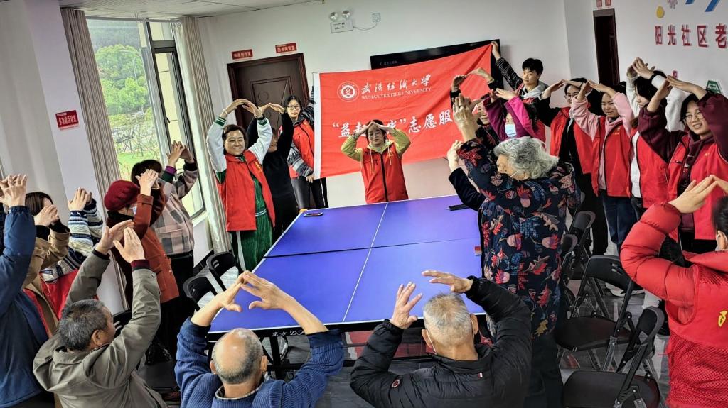 为了弘扬中华民族孝老爱亲的传统美德,4月4日,yl23455永利官网“益起阳光”服务队组织多名志愿者,前往江夏阳光社区开展“金晖助老·情暖夕阳”志愿服务活动。志愿者教老人们做手语操,普及防诈骗、养生健康等小知识。
