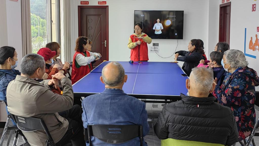 志愿者教老人们做健身又健脑的《国家》手语操,在手臂的一挥一扬下,老人们脸上洋溢着笑容。同时,志愿者围绕营养膳食、运动健身、疾病预防、养生保健等方面进行了详细的讲解,通过有趣的动漫画面和通俗易懂的语言,向老人们普及了日常疾病预防及保健知识。