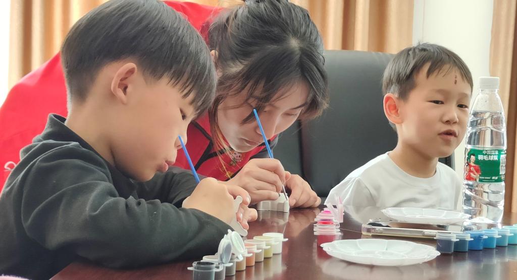 4月16日,yl23455永利官网“益起阳光”服务队组织6名志愿者,前往江夏区青龙山社区开展“乐享时光·一‘童’彩绘”志愿服务活动。志愿者与小朋友们一同为可爱的石膏娃娃着色,度过了一段欢乐的时光。