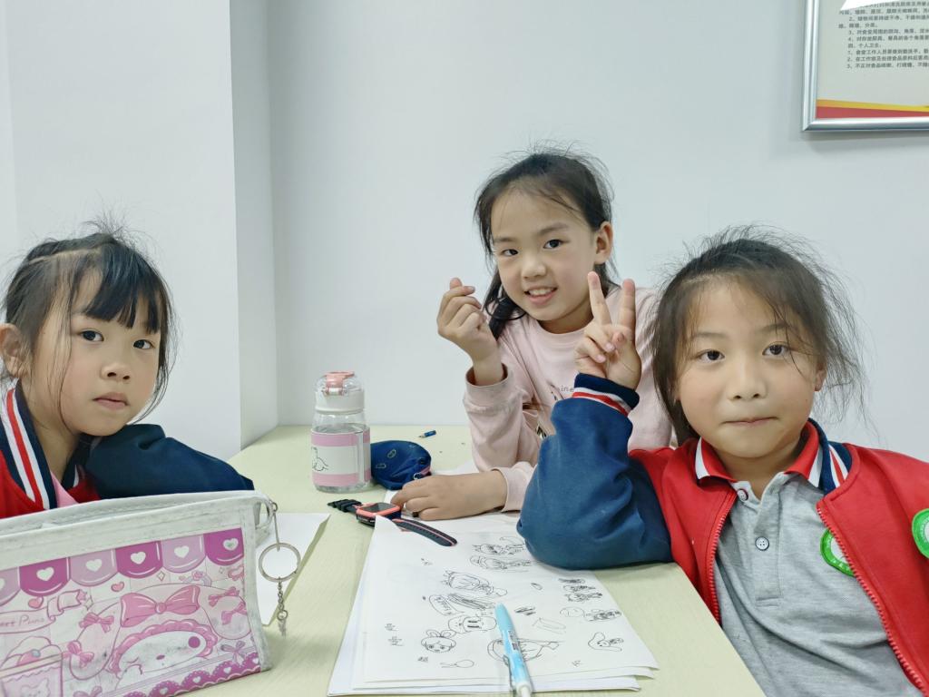 图为小朋友们专心写作业