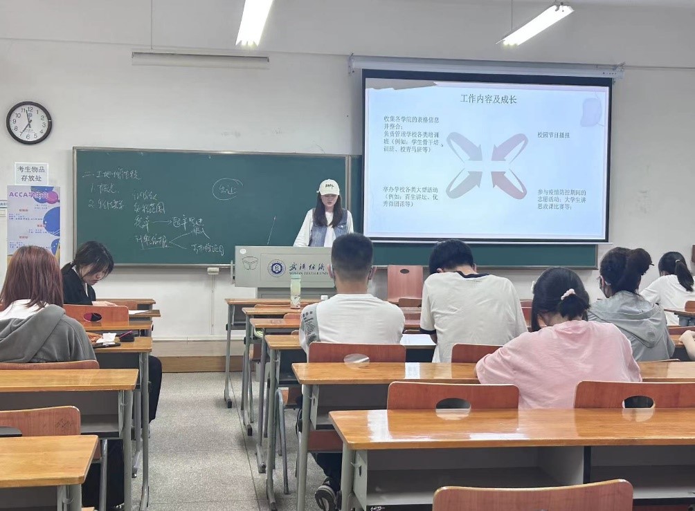 李若瑜介绍了自己进大学以来的成长。自2021年入校以来,她始终在团学工作的岗位,从一次次的工作活动中不断积累经验,做事情更加有条理、有逻辑,遇到突发状况也能冷静处理。志愿服务、幕后工作、广播台……她丰富的学生工作经历让与会同学连连称赞。