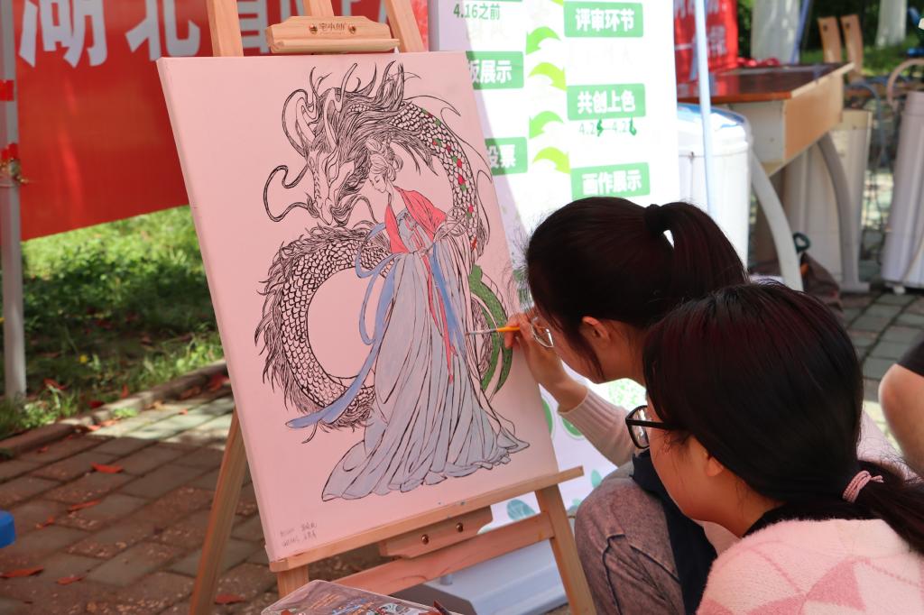 活动收到来自各学院学生的三十余幅投稿作品。经过综合评选,11幅优秀线稿脱颖而出,由作者描绘于画布上,投放至摆点处,全校师生共同上色。大家纷纷发挥想象力和创造力,用色彩表达想法。