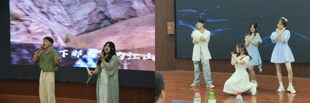 张座铭老师、赵华老师分别演唱了《敢问路在何方》和《等待》,用歌声激励同学们,在面对未知时,要不畏艰险、不断攀登,永久奋斗、赤诚奉献,把论文写在祖国大地上,在强国建设、民族振兴的征程中留下青春足迹。