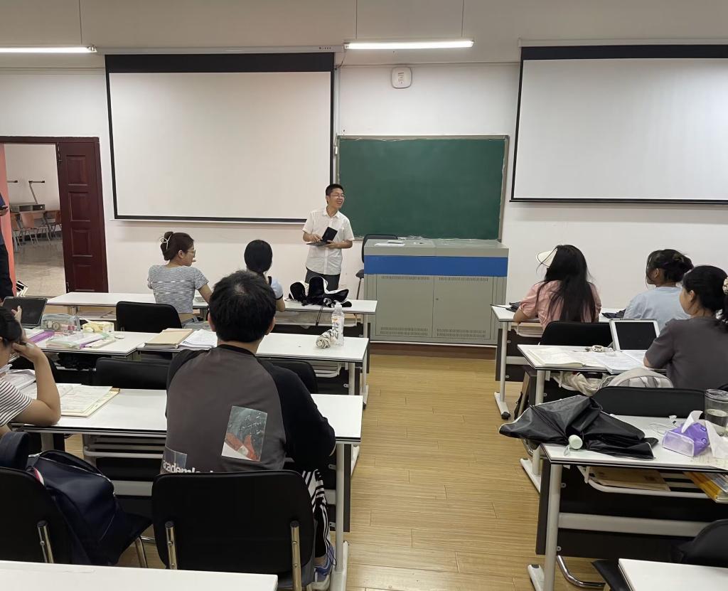 赵立彬向同学们介绍了会计学院2023届研究生的培养情况与毕业去向,他勉励在场学生要珍惜时光,在暑期备考中全力以赴,要学会结合备考情况科学权衡、合理分析、理性确立目标院校,争取一战成硕。赵立彬引用苏轼《定风波》中的诗句“回首向来萧瑟处,归去,也无风雨也无晴”寄语在场学生要保持豁达乐观的人生态度,以积极阳光的心态复习考试。