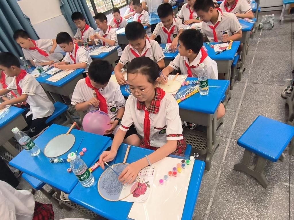 在南漳县卞和小学和南漳县九集镇双泉村,“益起阳光”实践团面向少年儿童开展了非遗手工、科学实验等特色活动,为小朋友们开启“七彩假期”。志愿者李静文、李瑞岩带领小朋友们开展了扎染手工和团扇制作活动,志愿者刘飞越带领小朋友们学习彩绘。刘飞越表示,“涂石膏娃娃可以增强孩子的色彩感知能力,让他们享受挥舞画笔时的痛快淋漓。”孩子们在一个个石膏娃娃上描绘绚丽的色彩,挥舞画笔,创意迸发,俨然一个个小画家。