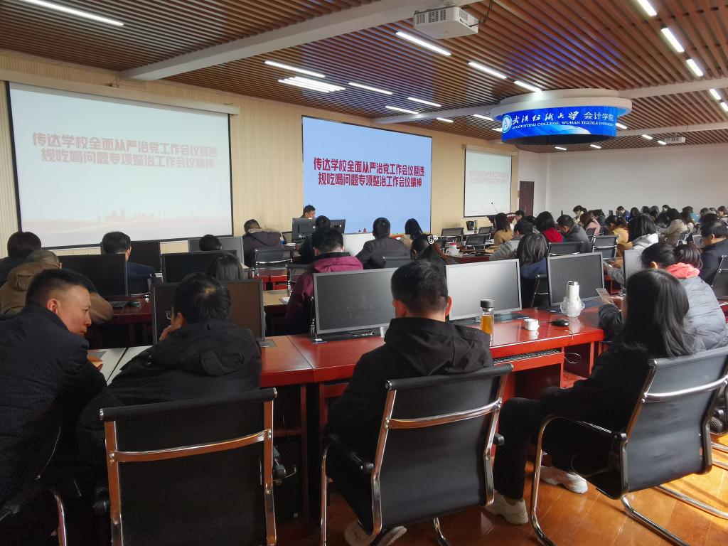 3月2日下午,我院在崇德楼403召开违规吃喝问题专项整治工作会议,开展师德师风专题教育。学院全体教职工参加会议,会议由院长赵立彬主持。